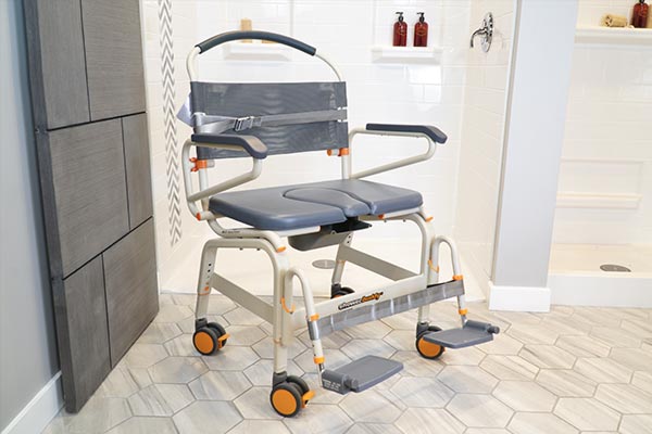 As you research a rolling shower chair, make a point to assess the features and functions, but also the dimensions of the chair and the quality of the wheels. A rolling chair relies heavily upon its wheels to function so you should choose a chair that will support the weight and usage for the long term. This is also why we suggest finding an option that comes with a warranty – assistive technology should give you peace of mind that it will last or be covered in the event something does go wrong.