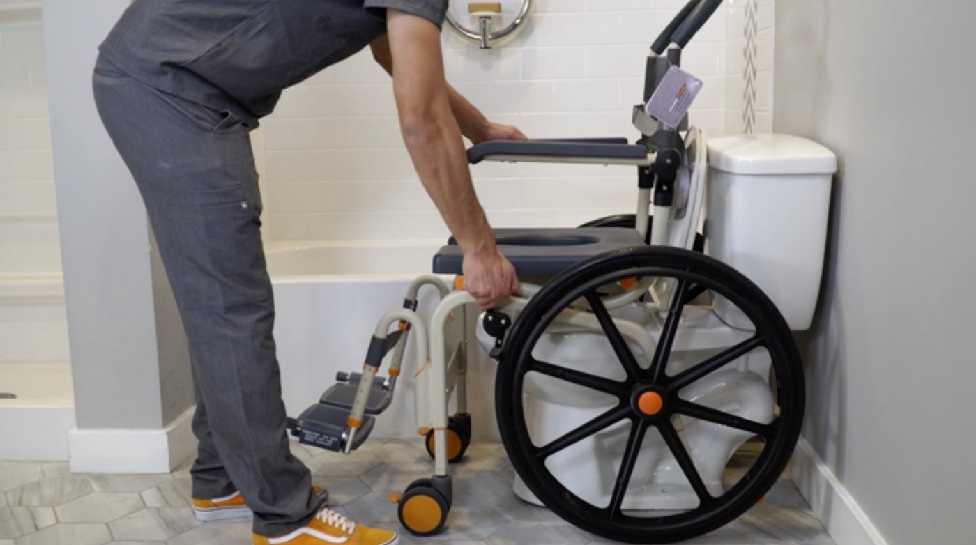 He also appreciates the large caster wheels that allow the chair to be pushed around over bathroom tiles and onto carpet for complete ease of transfer.