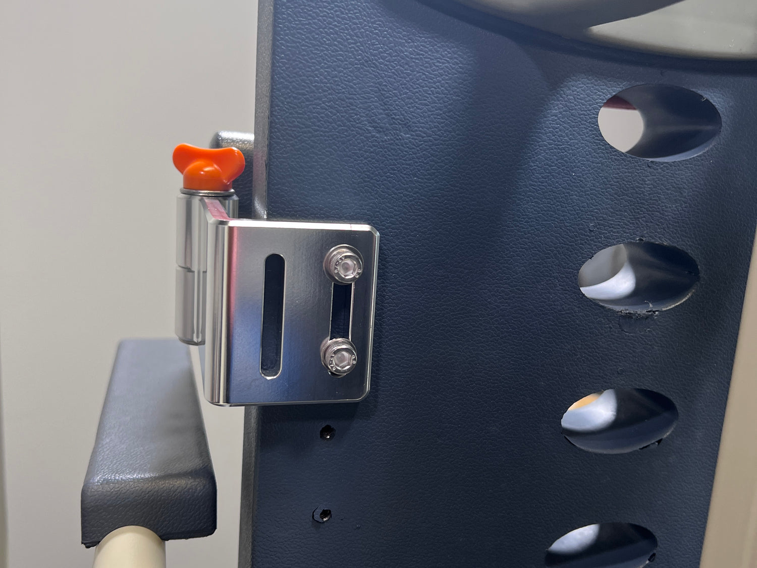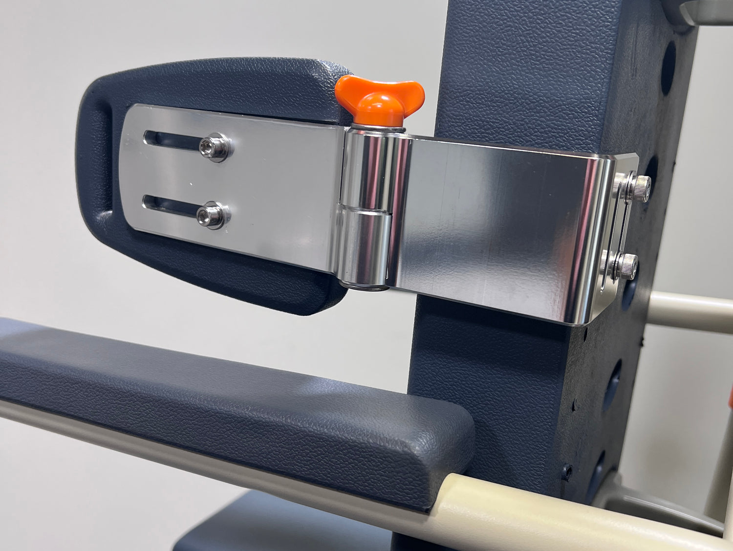 Can be installed on Showerbuddy HM model chair, Petite Adapter P1 and P2 only. LAT-P laterals are screw fixed to the back of the PU backrest with a range of height options to suit the user. The standard lateral clamp fixing is replaced with the bracket and screws.