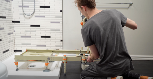 Converting a bathroom for mobility needs is typically a major undertaking. Often the entire bathroom requires full remodeling including bespoke shower, toilet or vanity units to cater for these special requirements. This comes at significant cost, time and stress. For people renting, coping with mobility needs can be harder still – bathroom alterations are simply not an option.