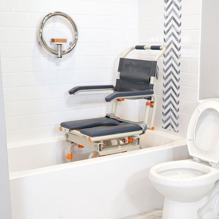 The TubBuddy SB2 allows for an easy slide transfer into and out of a bath-style shower, all while you are comfortably seated, with no bathroom modifications necessary. Access your bathroom today.