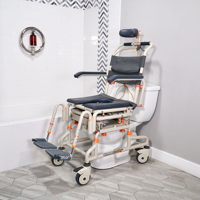 SB2T will also roll over most toilets. Life is made so much easier and hygienic with the TubBuddy Tilt. Mobility impairment no longer requires bathroom remodeling.